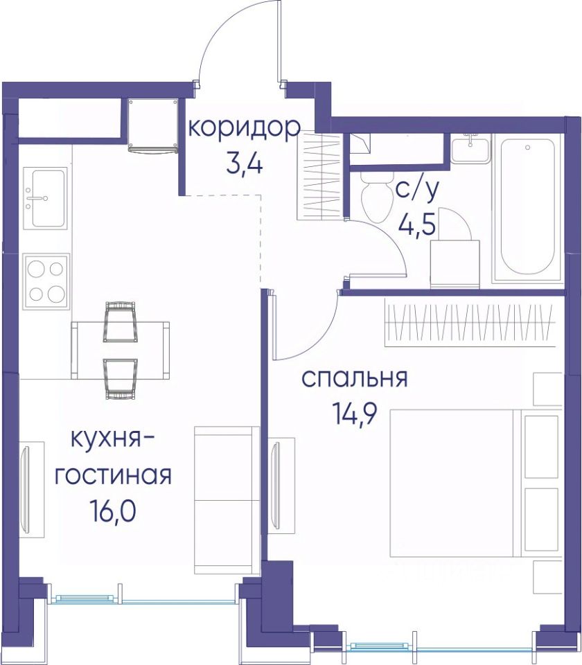 В продаже 1-к квартира от застройщика. Общая площадь 38.80, жилая 14.90, кухня 16. Квартира расположена на 34 этаже жилого квартала "Событие-6", корпус 2, Секция 5. Квартира без отделки. Срок сдачи: 4 кв. 2029 года.