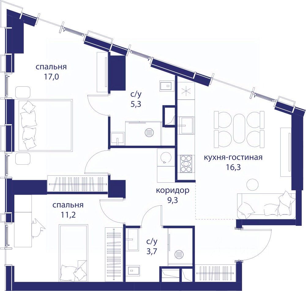 • Закрытые общественные пространства: детская комната, спортивный зал, коворкинг, лаунж-зоны.