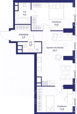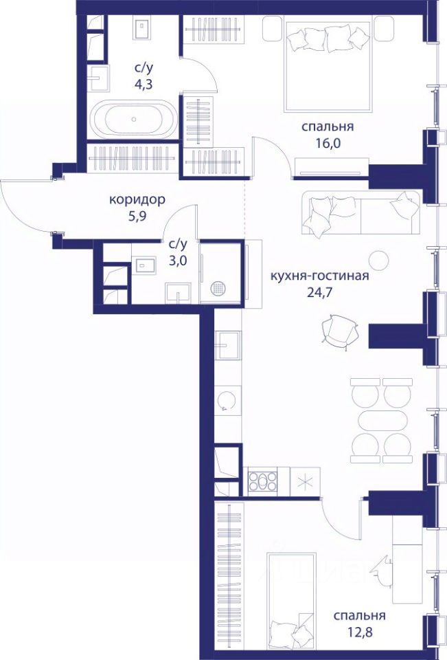 В продаже 2-к квартира от застройщика. Общая площадь 66.70, жилая 28.80, кухня 24.7. Квартира расположена на 6 этаже жилого квартала "Событие-6", корпус 1, Секция Секция 1. Квартира без отделки. Срок сдачи: 4 кв. 2029 года.