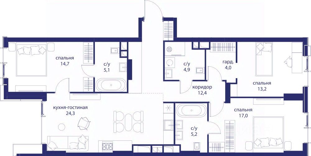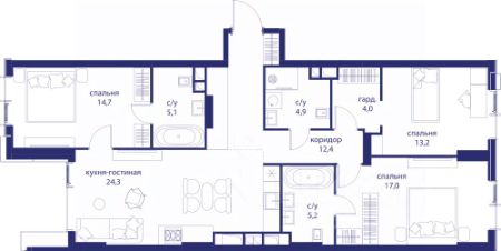 • Закрытые общественные пространства: детская комната, спортивный зал, коворкинг, лаунж-зоны.