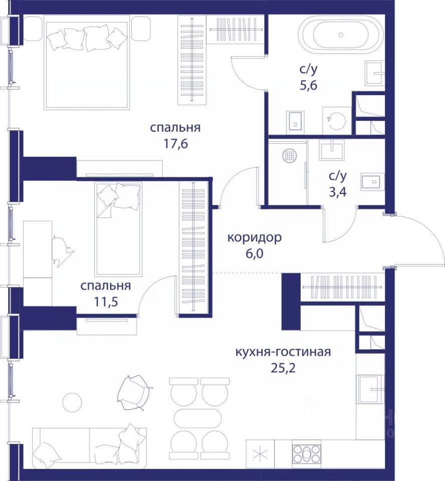 • Закрытые общественные пространства: детская комната, спортивный зал, коворкинг, лаунж-зоны.