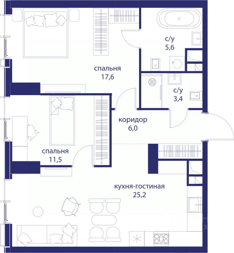 • Закрытые общественные пространства: детская комната, спортивный зал, коворкинг, лаунж-зоны.
