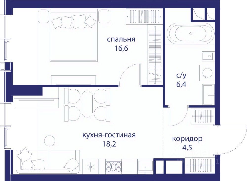 • Закрытые общественные пространства: детская комната, спортивный зал, коворкинг, лаунж-зоны.