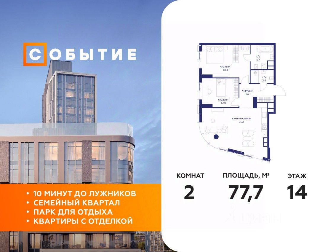 СОБЫТИЕ.6 — финальный дом парк-квартала СОБЫТИЕ на Мосфильмовской. Переезжайте в уже сформированный квартал с готовой инфраструктурой и парком! Премиальный жилой комплекс в престижном районе Москвы предлагает стильную архитектуру, продуманное благоустройство и великолепно разнообразие общественных пространств. Свой парк прямо возле дома!