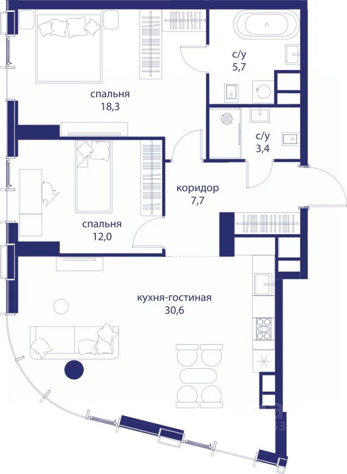 • Закрытые общественные пространства: детская комната, спортивный зал, коворкинг, лаунж-зоны.