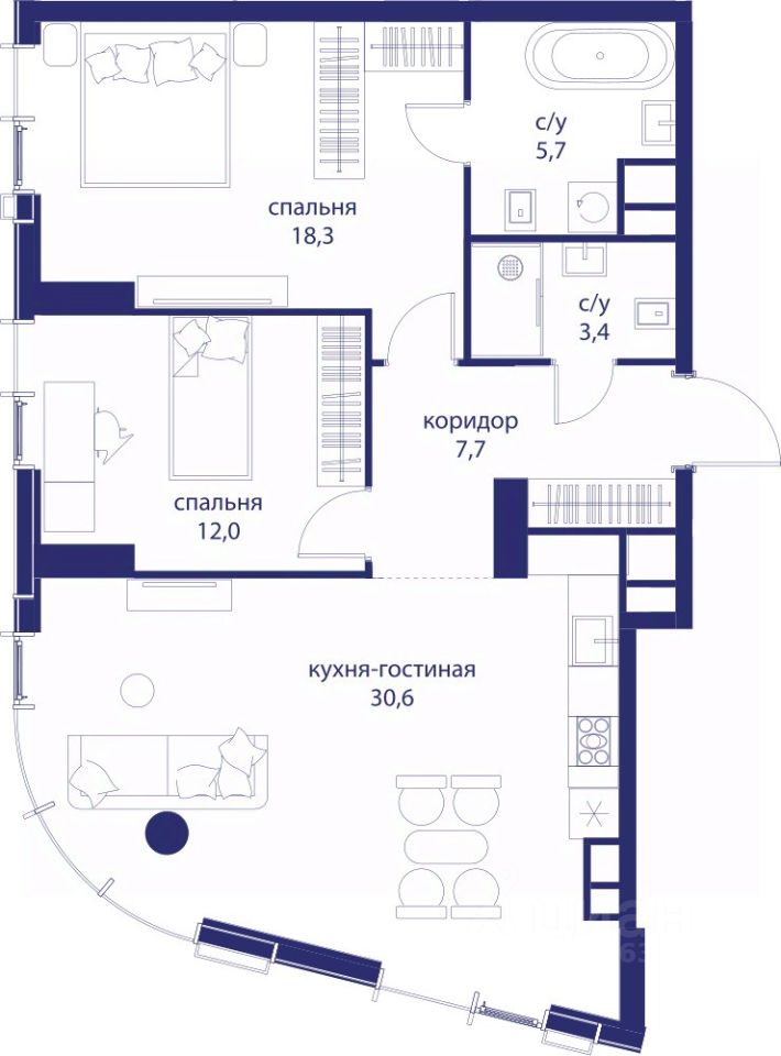 • Закрытые общественные пространства: детская комната, спортивный зал, коворкинг, лаунж-зоны.