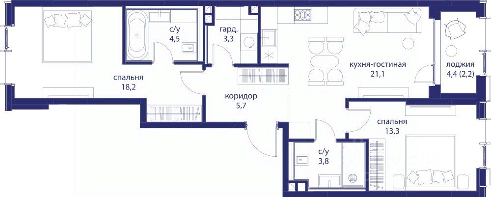 • Закрытые общественные пространства: детская комната, спортивный зал, коворкинг, лаунж-зоны.