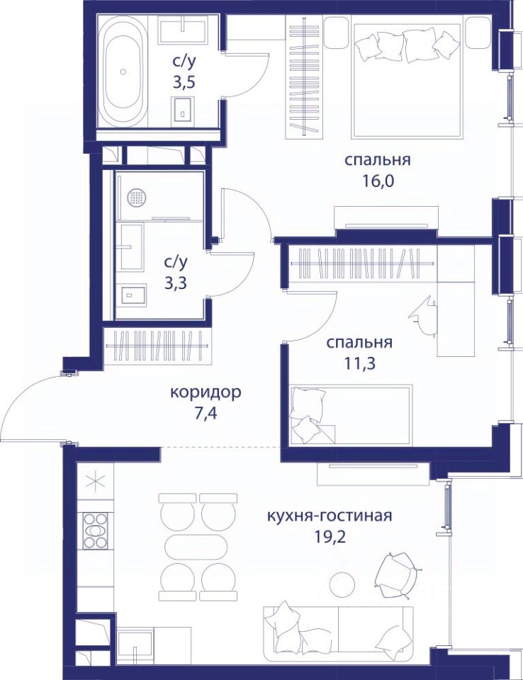 • Закрытые общественные пространства: детская комната, спортивный зал, коворкинг, лаунж-зоны.