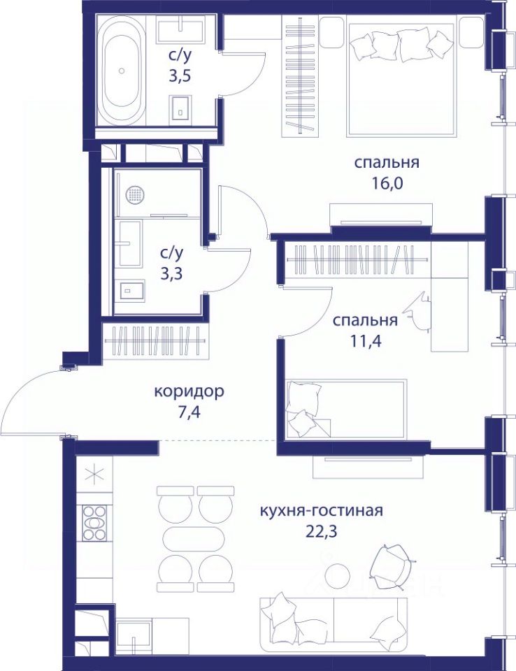 • Закрытые общественные пространства: детская комната, спортивный зал, коворкинг, лаунж-зоны.