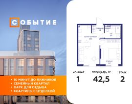 В продаже 1-к квартира от застройщика. Общая площадь 42.50, жилая 14.10, кухня 20.6. Квартира расположена на 2 этаже жилого квартала "Событие-6", корпус 1, Секция Секция 3. Квартира с чистовой отделкой. Срок сдачи: 4 кв. 2029 года.