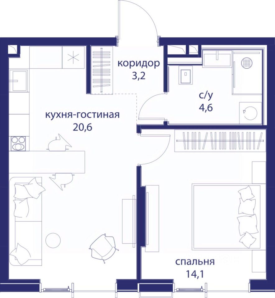 • Закрытые общественные пространства: детская комната, спортивный зал, коворкинг, лаунж-зоны.