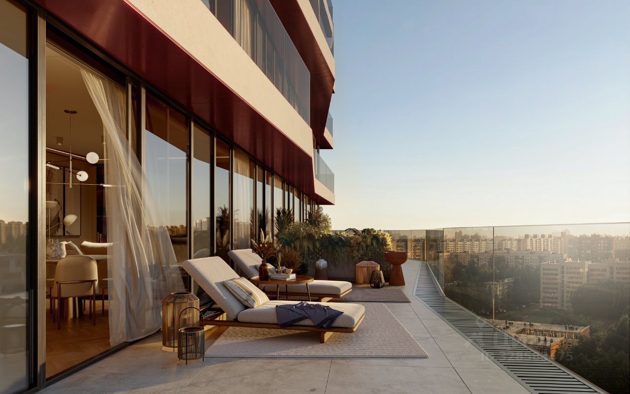 Яркая архитектура с переменной высотностью от 7 до 22 этажей от именитого бюро APEX формирует запоминающийся облик проекта.