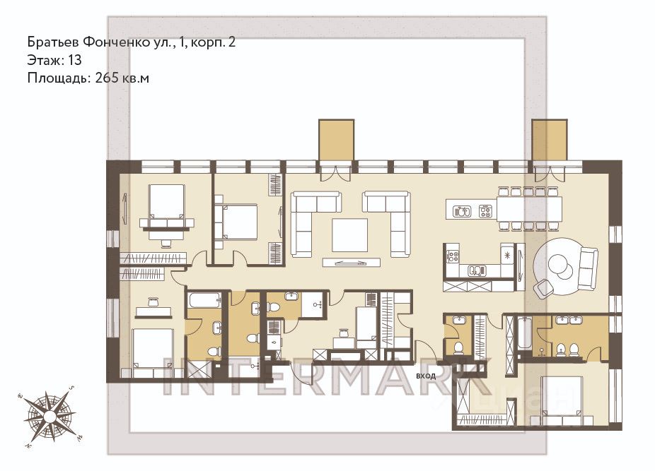 Внутренняя территория с ландшафтным дизайном станет идеальным местом для отдыха, прогулок, детских игр и занятий спортом на свежем воздухе. Локация обеспечивает удобный выезд на Кутузовский проспект и близость к знаковым местам отдыха, включая Поклонную гору и парк Победы.