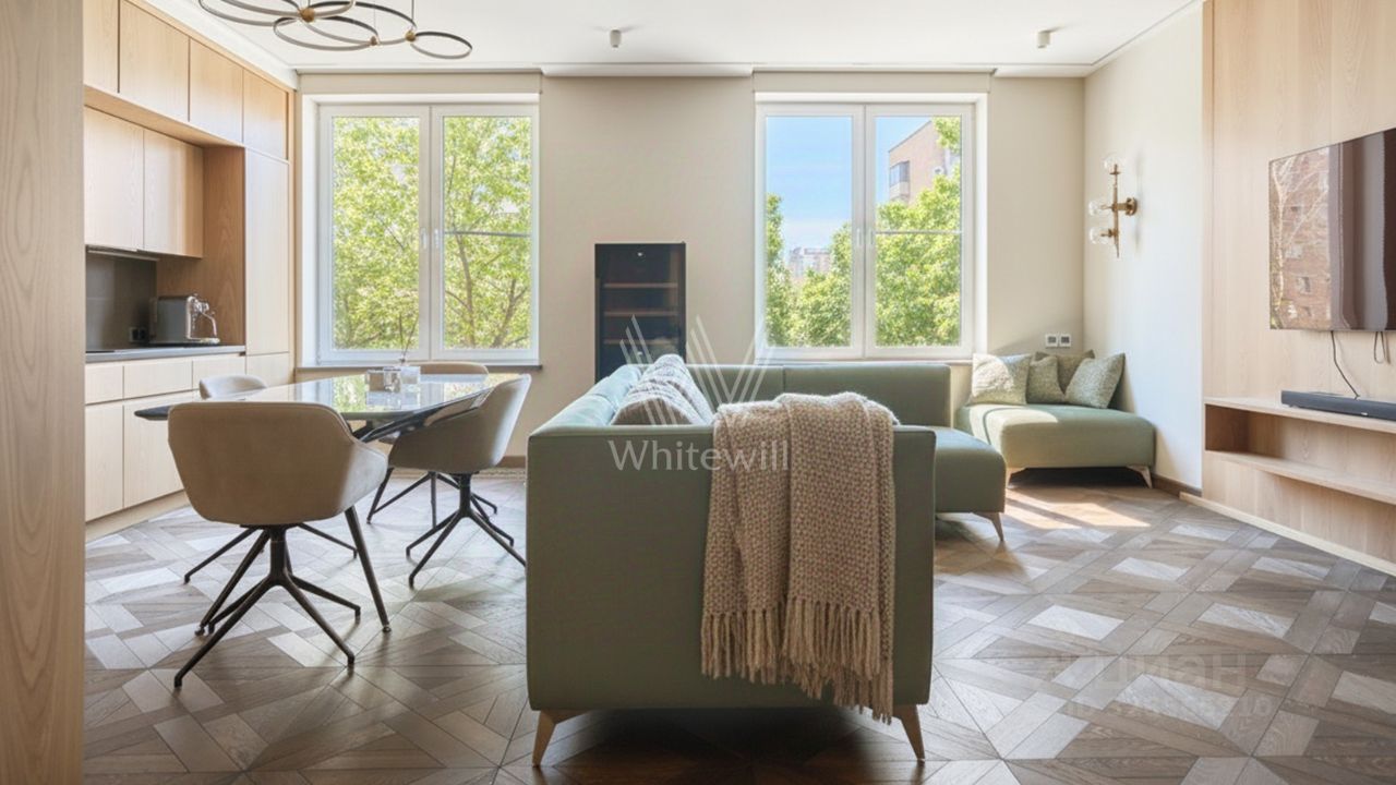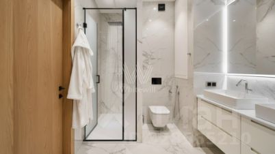 Просторная квартира с 2 спальнями площадью 98 м² во втором корпусе комплекса "Свой". Интерьер оформлен в минималистичном современном стиле и в нейтральных тонах. Уютная кухня оснащена бытовой техникой, а ванная комната — сантехникой и зеркалом с функциональной подсветкой. Планировка: кухня-гостиная, две спальни, в каждой из которых своя гардеробная, ванная комната, гардеробная и прихожая.