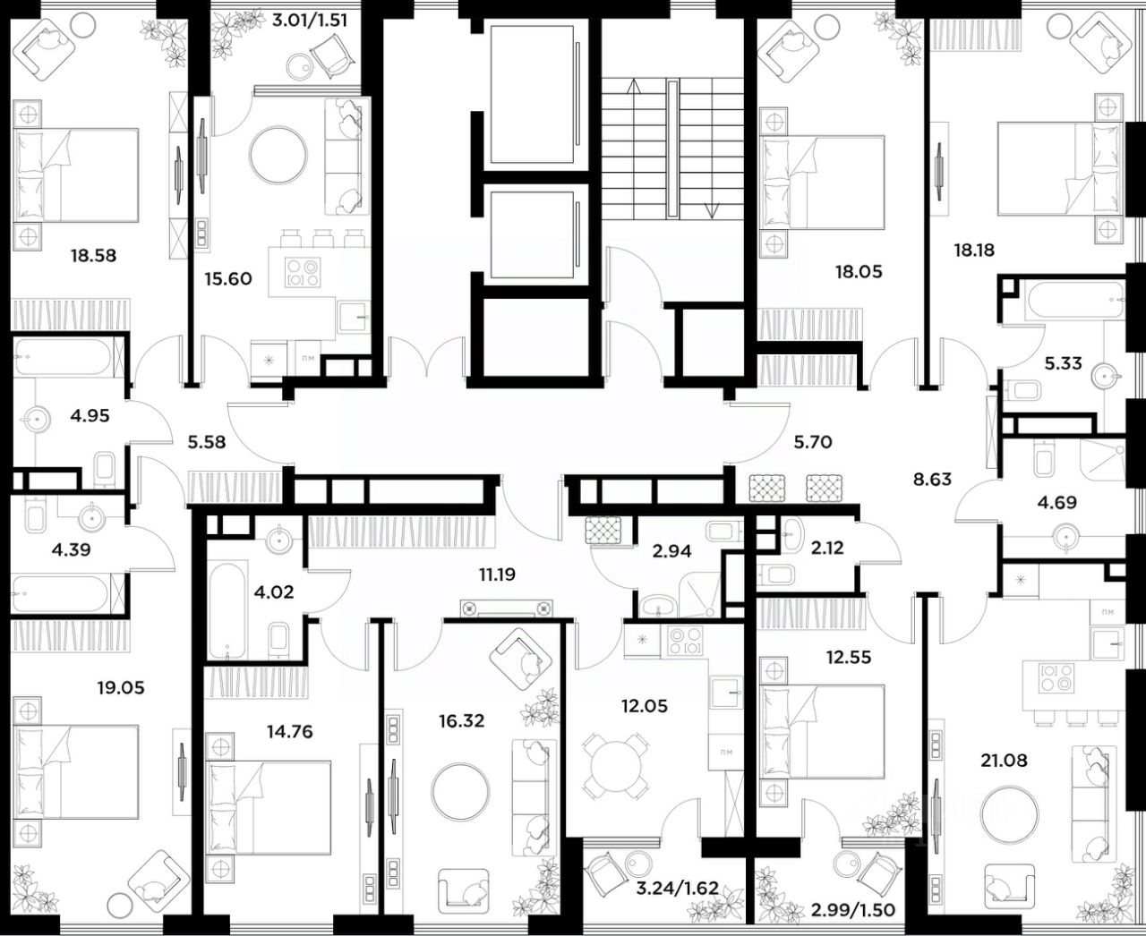 В Алиа больше 140 планировочных решений, среди которых — редкие для Москвы форматы: квартиры с окном в ванной, пентхаус, сити-юниты и таунхаусы.