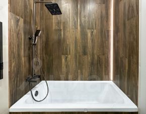 . Тёплые полы в коридоре и санузлах, система тропического душа Встроенные шкафы, декоративное освещение, кондиционеры в спальне, гостиной и детской комнате