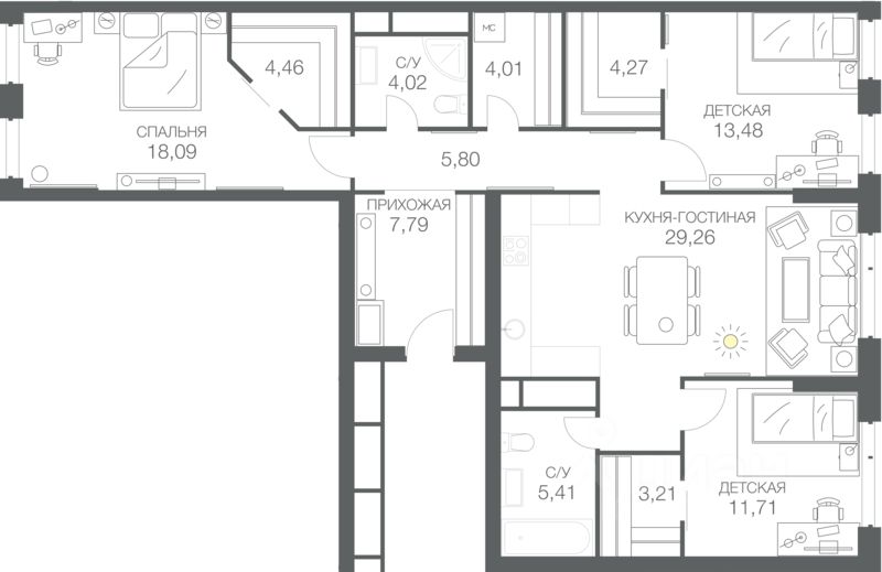 Предлагается Вашему вниманию 3х-комнатная квартира бизнес-класса, на 16-м этаже, без отделки, в Жилом комплексе HEADLINER".