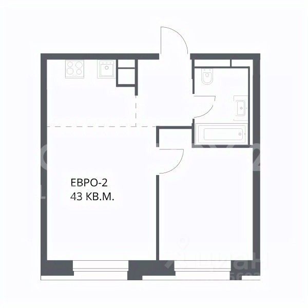 О квартире: Евро-2 с кухней-гостиной и отдельной спальней,43 кв.м., этаж 7. Квартира в отделке White box.