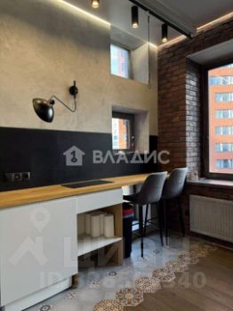 Квартира с евроремонтом, высокими потолками (3,1 м) и большими окнами, выходящими на улицу. Жилая площадь составляет 15 кв. м, кухня — 4 кв. м. В квартире один раздельный санузел.