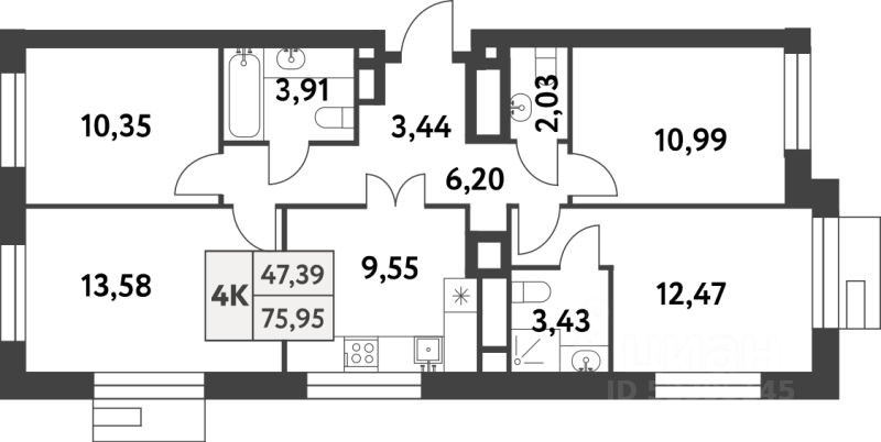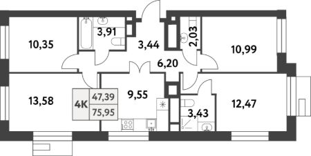Продаётся 4-комнатная квартира в строящемся доме (Корпус 1), срок сдачи: IV-кв. 2026, общей площадью 75.9 кв.м., на 12 этаже. Многоквартирный жилой комплекс по адресу: г. Москва, поселение Сосенское, поселок Газопровод, улица Лесные Поляны 5-я, земельный участок 20