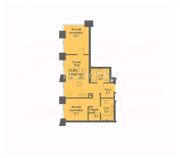 Продаётся двухкомнатная квартира, площадью 65.5 м², в жилом комплексе бизнес-класса "Soul" с предчистовой отделкой WHITE BOX и высотой потолков 3,1 м.