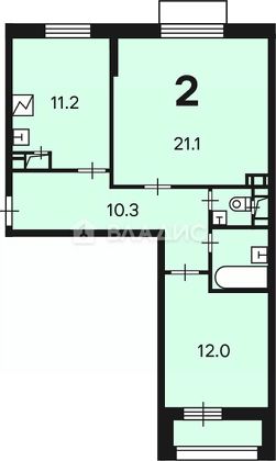 Общая площадь квартиры составляет 59,1 кв. м, из которых 33,1 кв. м — жилая площадь, 11,2 кв. м — кухня. Высота потолков — 2,7 м. В квартире выполнен косметический ремонт, что позволит новым владельцам сразу заселиться или при желании адаптировать пространство под свои предпочтения.
