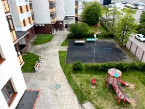 В огороженном высоким металлическим забором дворе площадью 0,74 Га въезд под шлагбаум, удобные парковочные места в избыточном количестве, благоустроенные места для отдыха, спортивная и две детские площадки, в подъезде домофон, промывной гигиеничный мусоропровод, большая колясочная, на первом этаже клиника "Медси".