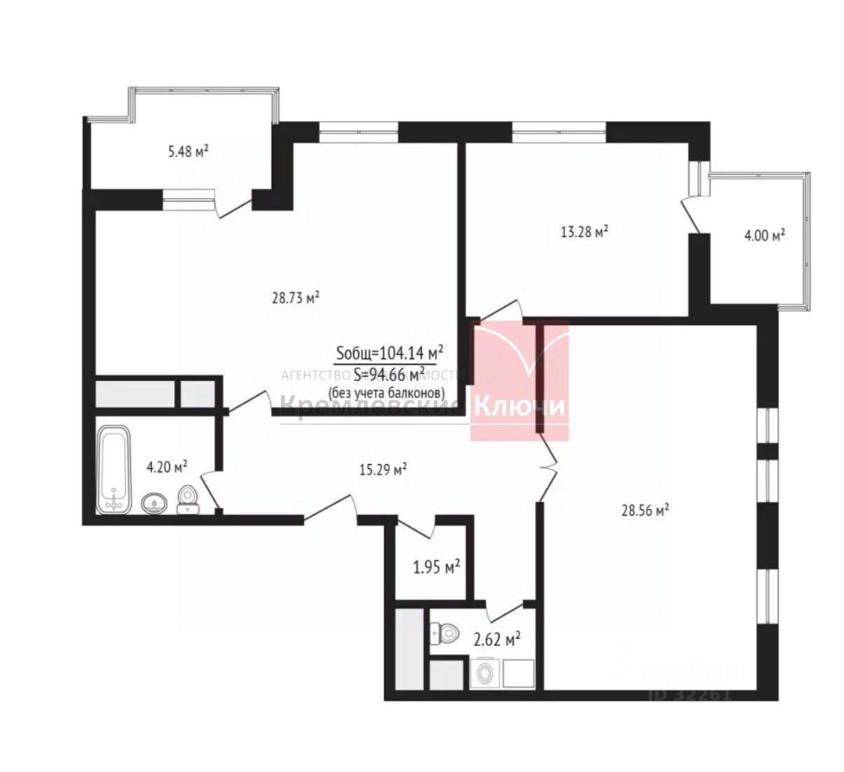 94,6 м²