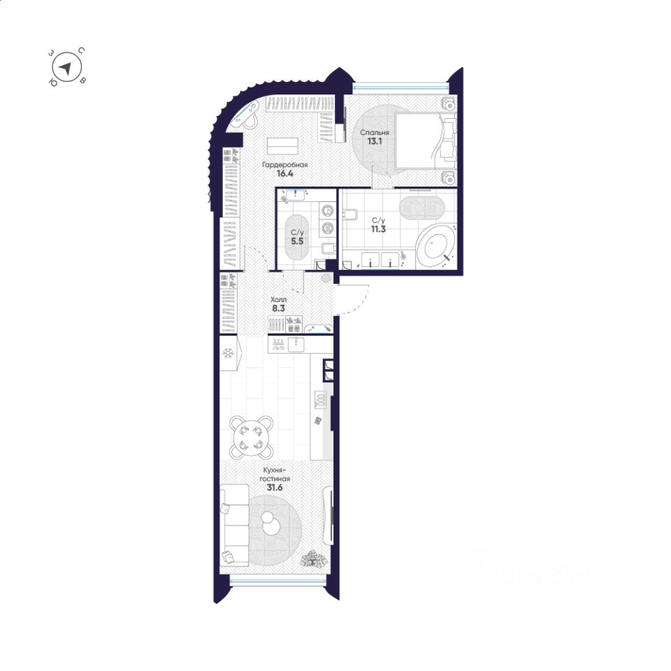 Продается квартира 1, по адресу г. Москва, ЮЗАО, Гагаринский район, ул. Фотиевой, вл. 5, корпус Резиденция Омега в Резиденция Омега на 2 этаже, с площадью 86.2 м2.