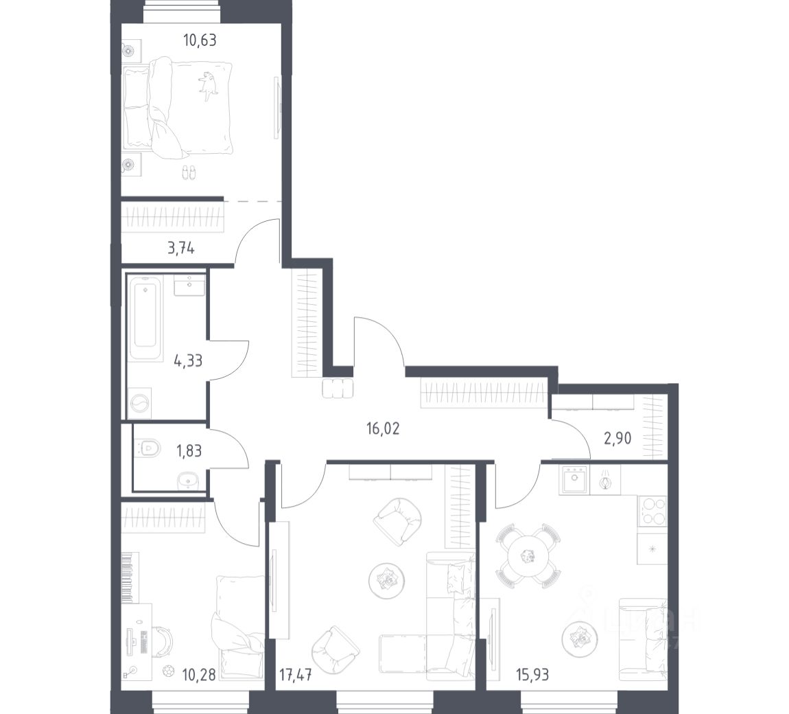 Строим кварталы для жизни с заботой о будущем. Предлагается 3-комнатная квартира комфорт-класса площадью 83,13 кв.м в корпусе 2 на 2-м этаже, в жилом комплексе "Квартал Домашний".