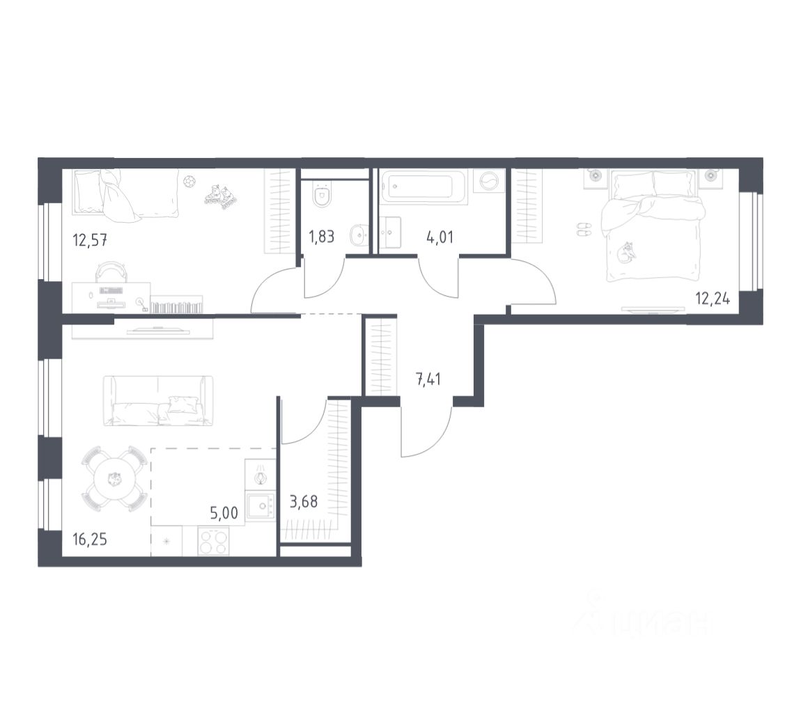 Строим кварталы для жизни с заботой о будущем. Предлагается 2-комнатная квартира комфорт-класса площадью 62,99 кв.м в корпусе 2 на 4-м этаже, в жилом комплексе "Квартал Домашний".