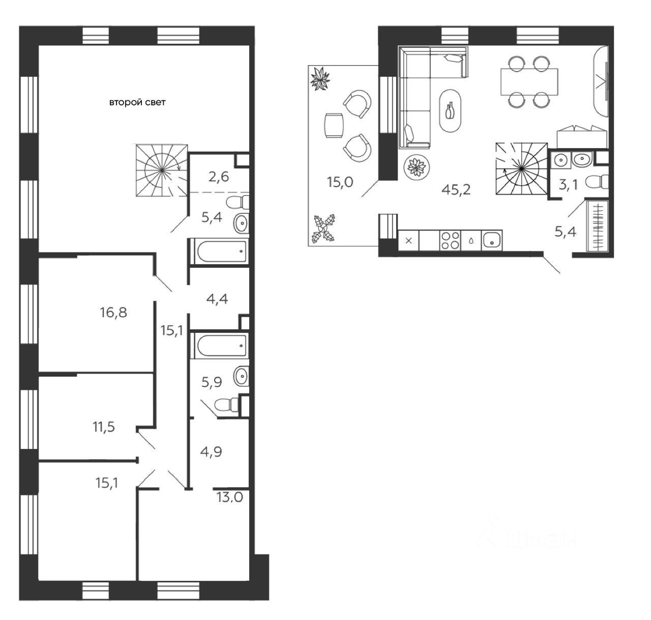Продаётся 4-комнатная квартира в сданном доме (набережная Марка Шагала, 11к3 (Корпус 7)), срок сдачи: I-кв. 2025, общей площадью 153.3 кв.м., на 1 этаже. Это город в городе, который не подстраивается под старые рамки, а задает новую планку и стандарт жилого района в России.