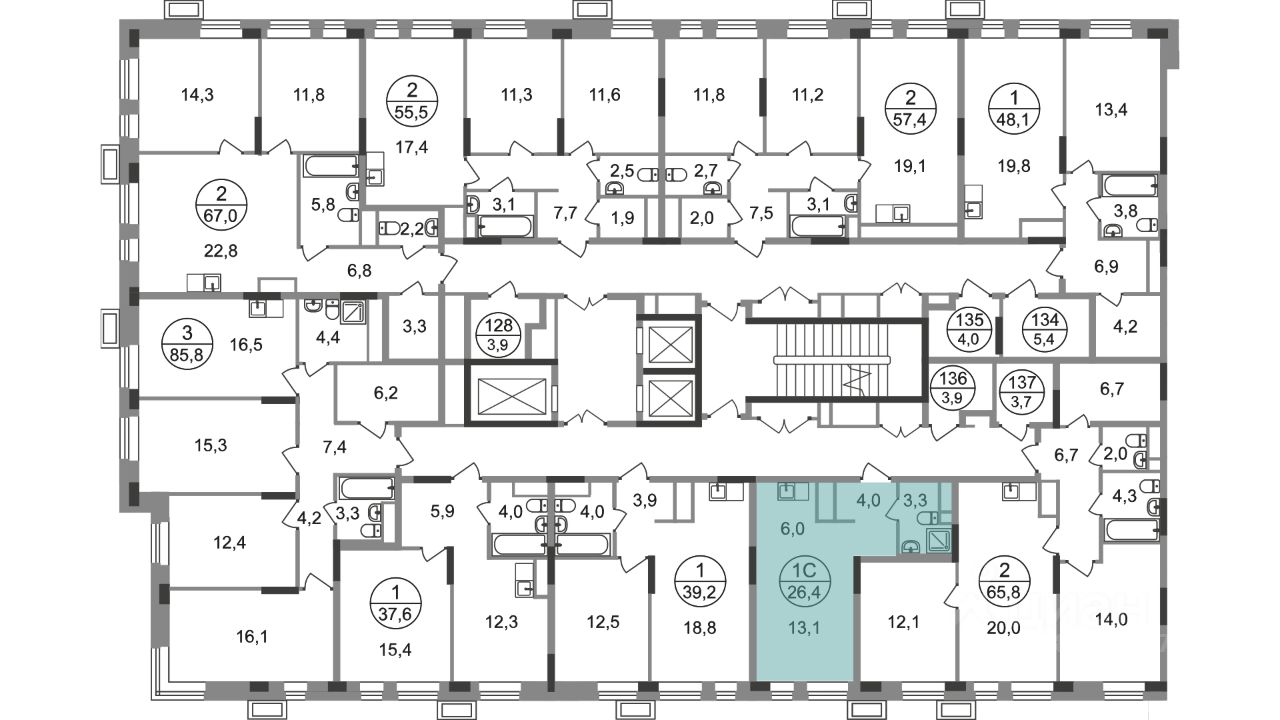Общая площадь квартиры - 26,4 кв. м, этаж 9 из 19.