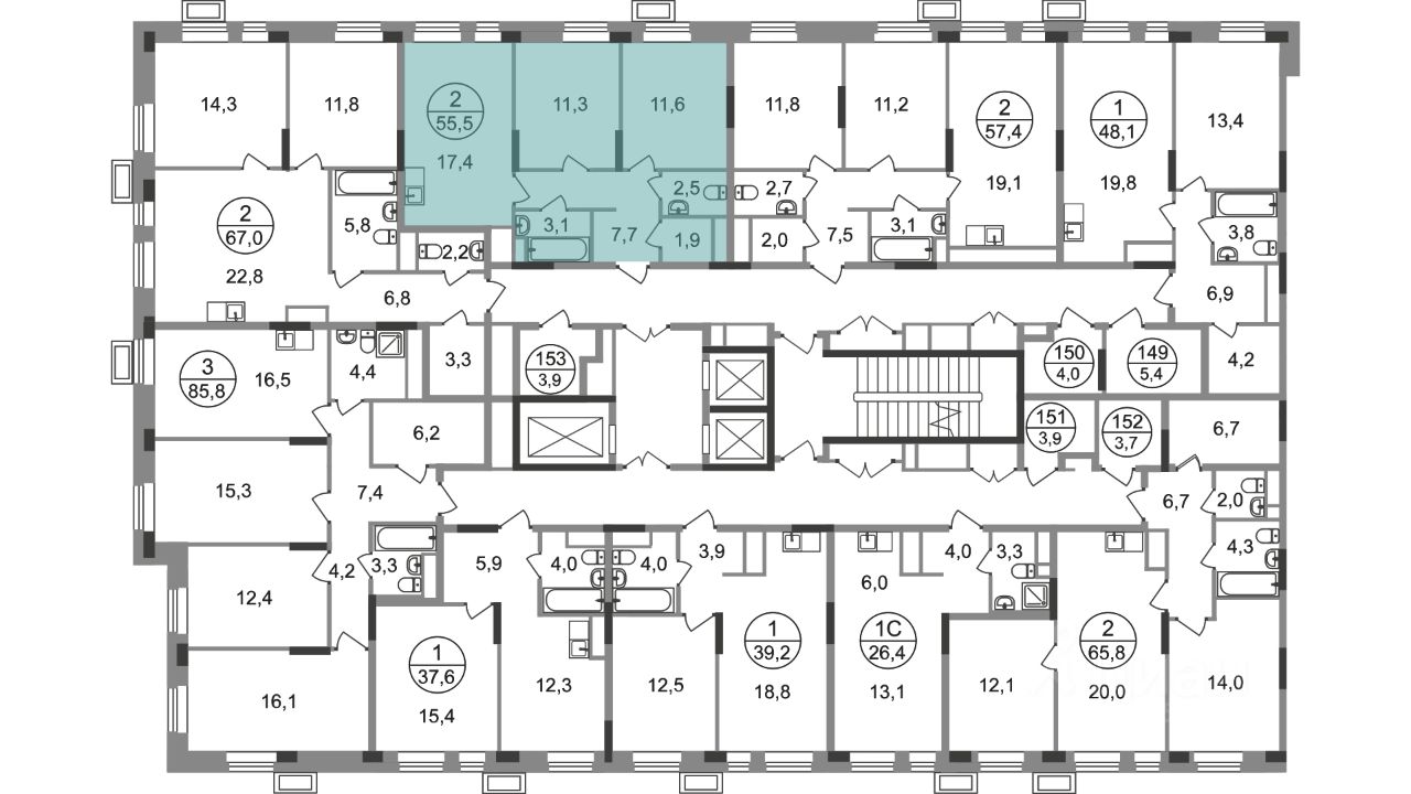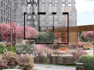 Общая площадь квартиры - 55,5 кв. м, этаж 12 из 19.