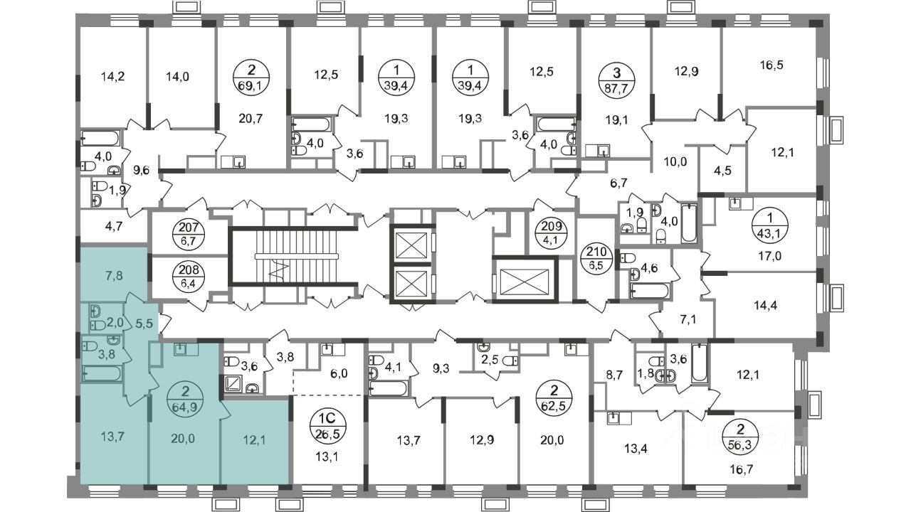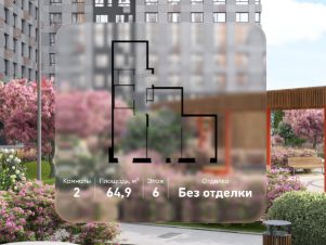 Общая площадь квартиры - 64,9 кв. м, этаж 6 из 19.