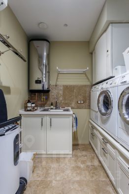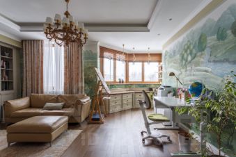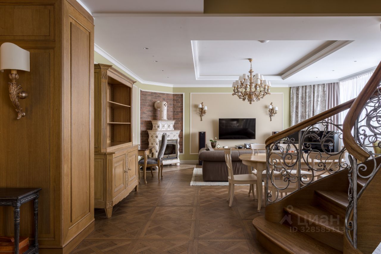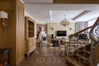 Просторная двухуровневая квартира площадью 175 кв. м расположена на 5 и 6 этажах 6-этажной секции современного кирпичного дома. В квартире выполнена дизайнерская отделка по авторскому проекту.