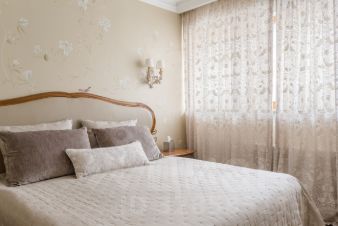 - Cпальня 1: кровать/тумбы `Flai`; встроенный шкаф, изготовленный на заказ;