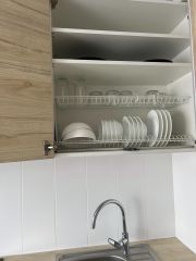 В квартире есть всё необходимое: холодильник, стиральная машина, стеклокерамическая варочная панель, кухонная вытяжка, эл.чайник, микроволновка, эл.духовка, утюг, пылесос, роутер, посуда, постельное бельё и полотенца.