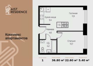 Продаются 2-к апартаменты площадью 36.80 кв.м. на 25-м этаже 30 этажного дома в "AIST RESIDENCE" от ГК МонАрх.