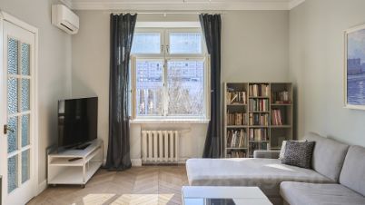 Квартира с 2 спальнями в комплексе "Дружинниковская, 11" напротив Пресненского детского парка. Квартира расположена на 6 этаже. Выполнен абсолютно новый ремонт — никто не жил. Интерьер оформлен в светлой современной стилистике с использованием качественных натуральных материалов, в отделке полов дубовый паркет. Во всех комнатах установлены кондиционеры Дайкин (Daikin).