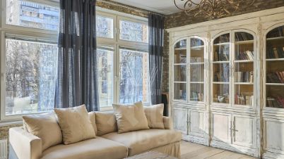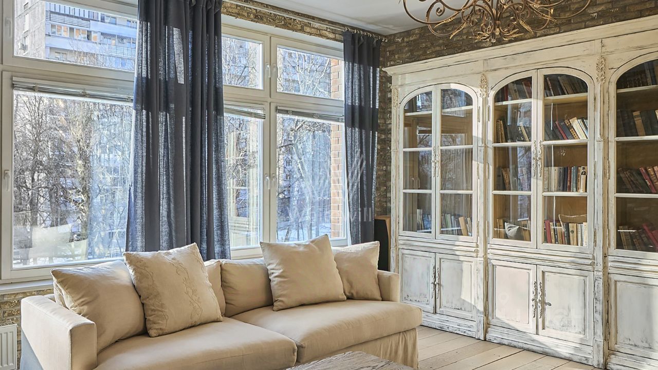 Стильная квартира с 1 спальней площадью 118 м² в комплексе "Квартал на Ленинском" на юго-западе Москвы. Фактически квартира находится на втором этаже, но благодаря высокому расположению создаётся ощущение уровня выше. Из окон открывается приятный вид во внутренний двор.