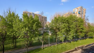 Главное о локации. Комплекс стоит на Ленинском проспекте, всего в пяти минутах пешком от зелёных маршрутов Воронцовского парка и Удальцовских прудов. Здесь удобно бегать по утрам, кататься на велосипеде или гулять с детьми у воды. За свежими продуктами жители заглядывают на "Рынок на Ленинском", где соседствуют фермерские лавки и кафе. В повседневной жизни помогают супермаркеты "Азбука вкуса" и "ВкусВилл", а за шопингом можно поехать в ТРЦ "РИО" или "Ленинский". Для спорта рядом фитнес World Class, а для семей — школы 1541 и 1311. До центра удобно добираться: выезд на ТТК и Садовое кольцо занимает не больше четверти часа.