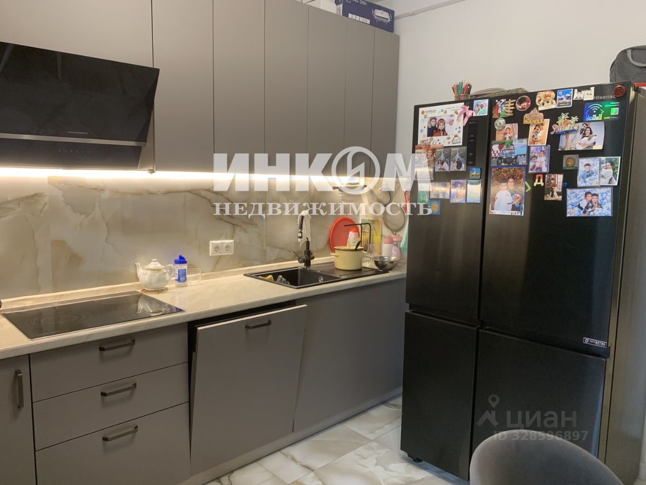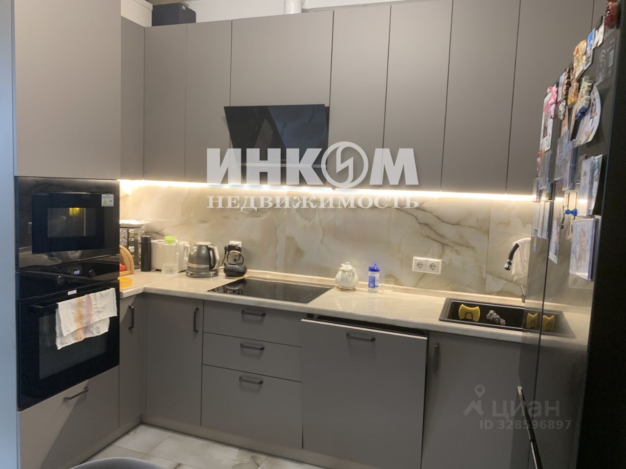 Уютная кухня со встроенной техникой и мебелью, есть посудомоечная машина 60*60, установлены фильтры для воды. Выход на большую застекленную лоджию из кухни.