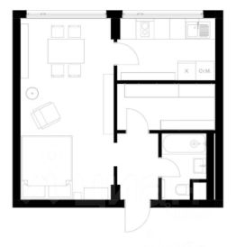 Продуманная планировка: отдельная кухня, просторный санузел с ванной, гардеробная, зонированное пространство гостиной/спальни, места для отдыха.