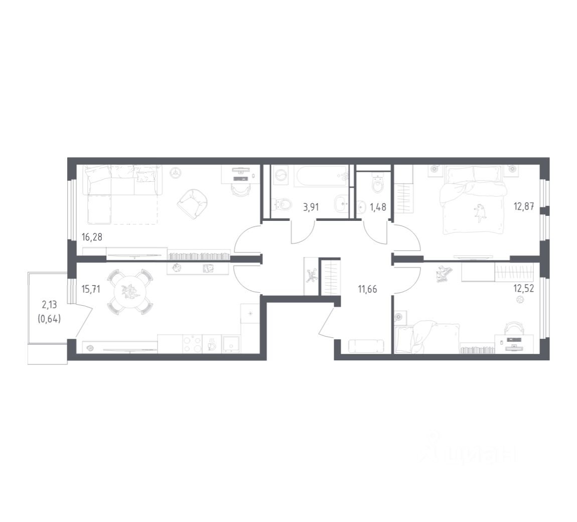 Строим кварталы для жизни с заботой о будущем. Предлагается 3-комнатная квартира комфорт-класса площадью 74,9 кв.м в корпусе 17 на 7-м этаже, в жилом комплексе "Остафьево".