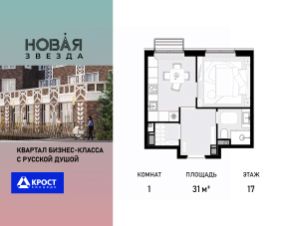 Продаётся 1-к квартира 31 кв.м. на 17-м этаже 22 этажного дома, корпус 2 - Резиденция "Сочи" . Без отделки.