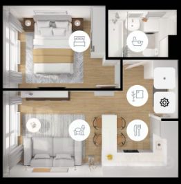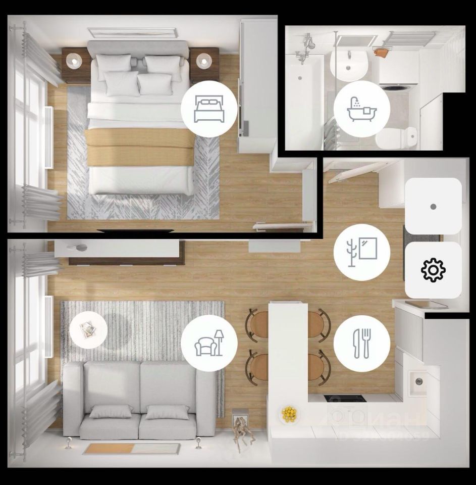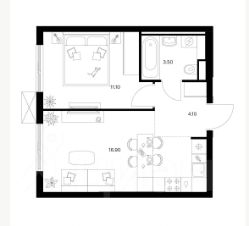 Продается уютная однокомнатная квартира с евроремонтом в современном доме 2025 года постройки, расположенном на 20 этаже 22-этажного здания. Общая площадь квартиры составляет 35.6 кв.м, из которых 20 кв.м занимает жилая площадь и 8 кв.м — просторная кухня. Высота потолков — 2.6 метра, что создает ощущение простора. Окна выходят на улицу, открывая вид на город.