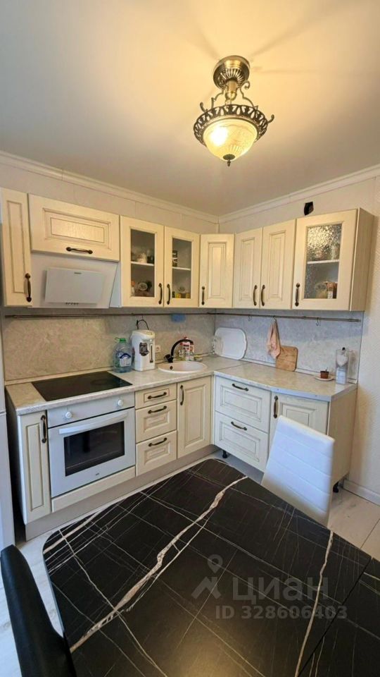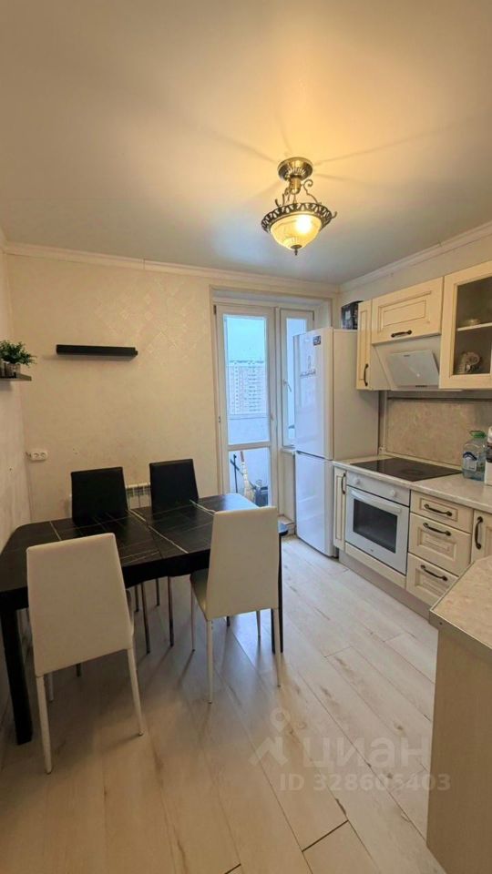 Квартира включает две изолированные комнаты и раздельный санузел. На кухне установлены шкафы и современная бытовая техника, включая холодильник. Лоджия добавляет дополнительное пространство для отдыха.