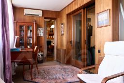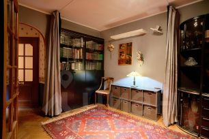 Малая комната (14,1 кв.м.) - сейчас это самостоятельный кабинет (с зоной домашнего кинотеатра), в котором стены обшиты красным деревом - может быть использована для любых целей;