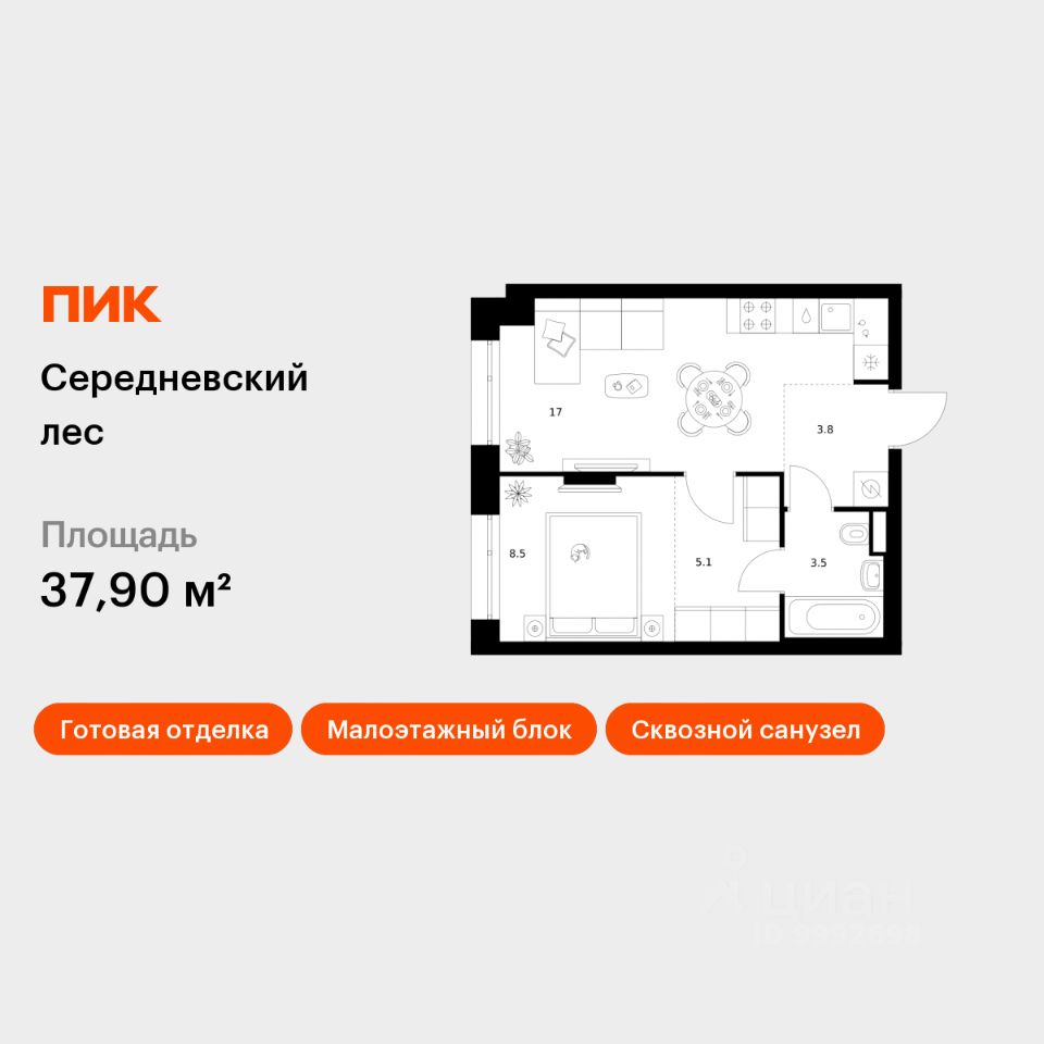 На территории "Середневского леса" появилось общественное пространство с игровыми площадками, местами для отдыха, пешеходными маршрутами и велопарковкой — для прогулок, отдыха и встреч жителей квартала. Также внутри жилого квартала уже открыта школа на 1100 мест и детский сад для 325 малышей. В дальнейшем откроется ещё один сад для 340 детей. Артикул 1038583 (Застройщик ООО "Специализированный застройщик Середнево")